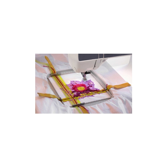 There are also specially designed stitches on the CD that can be combined into a unique design. As an extra bonus, four extra designs are found on the CD put together by these stitches. Two designs come with the hoop (a third may be downloaded at a special price). You can also use the hoop together with any design fitting the 6” x 6” (150x150 mm) size hoop.