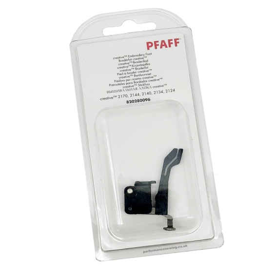 Use when stitching an embroidery design in a hoop.This foot was conceived especially for use with the embroidery functions of Pfaff sewing and embroidery machines. But it is also perfect for stitching free-motion embroideries, such as monograms. Lower your machines feed dogs, attach this special sewing foot and move the fabric evenly. Dont forget to use embroidery stabiliser. Feet Pfaff Creative Embroidery Foot Pfaff