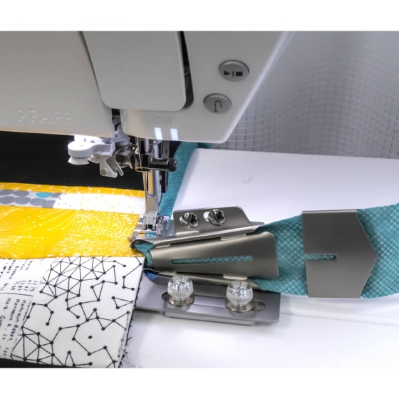 Very popular attachment for quilting. This is the quilt binder, use it to add bias tape to the edge of your next quilt making project to give perfect and professional finish to the quilt edge.