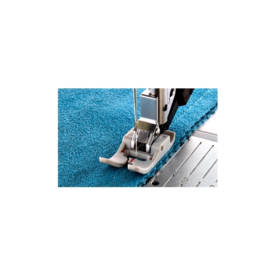 With Pfaff IDT Dual Feed. Due to the special coating on the bottom of this foot, its perfect for sewing hard-to-feed fabrics, like leather, foam, plastic, imitation leathers and plastic-coated fabrics. Old part number 820240096 Feet Pfaff Teflon Nonstick Foot Pfaff