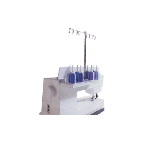 Snaps onto top of machine and features pins for up to eight spools of threads. Thread pins are numbered for embroidery colour changes.