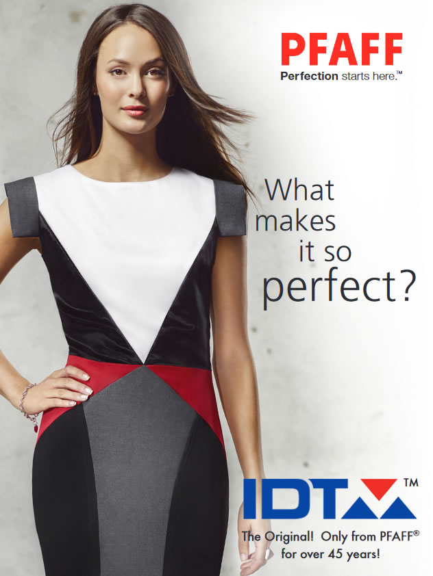 Original IDT System – Integrated Dual Transportation from PFAFF. The ultimate in piecing perfection. It gives perfect seams on all fabrics.