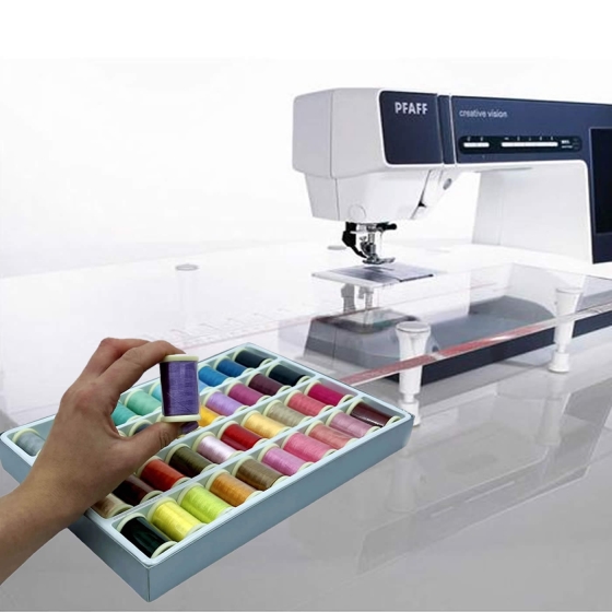 The combination you wish you had sooner... The large Pfaff Expression extension table and set of 40 different coloured, high-quality sewing and embroidery threads for decorative stitches and embroidery designs